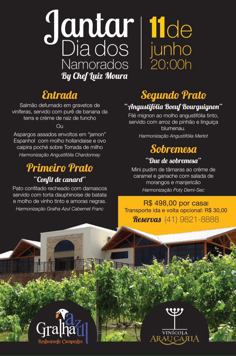 ALTA GAMA apresenta o Jantar Especial dia dos namorados na Vinícola Araucária